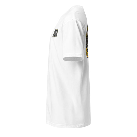 It's made of 100% ring-spun cotton and is soft and comfy. The double stitching on the neckline and sleeves add more durability.